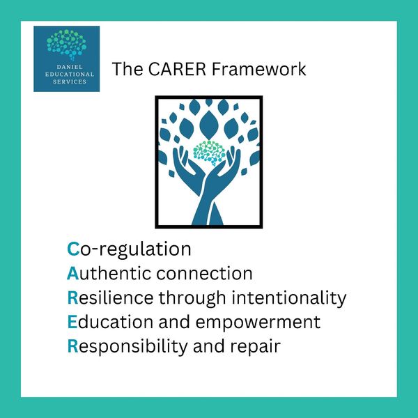 The CARER Framework is a way of structuring supportive strategies using the science of stress and well-being. The emotional regulation of the adult is a parallel process throughout that supports the regulation of students. This framework is mindful of the sequential nature of processing in the brain and uses this knowledge to support the development of Well-being for All.